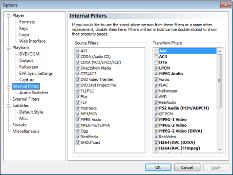 When a video file is loaded in MPC-HC, MPC-HC will run through this list from top to bottom and load the relevant filter(s), create a graph from them and play the file.
